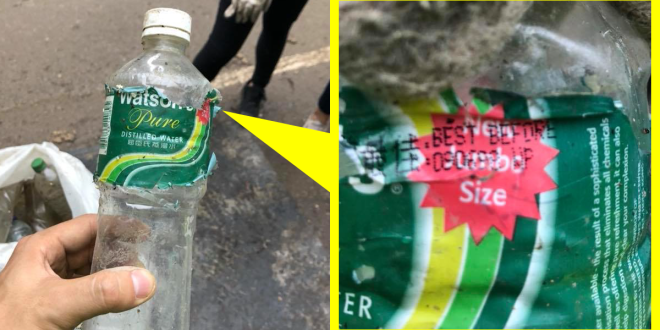 回收商「環保進城-雋成」今日在Facebook發帖,指他們協助清理杏花村被海浪捲上岸的垃圾時,當中有寫著「BEST BEFORE 090698」的屈臣氏蒸餾水樽,翻查資料,屈臣氏在2002年改用現有的膠樽設計,這件海洋垃圾相信已經有接近20年歷史,另外垃圾中亦有用膠文件袋裝著的文件,內裡的文件列明是95到96的課程資料,時隔20多年文件完好無缺,文字亦清晰可見。